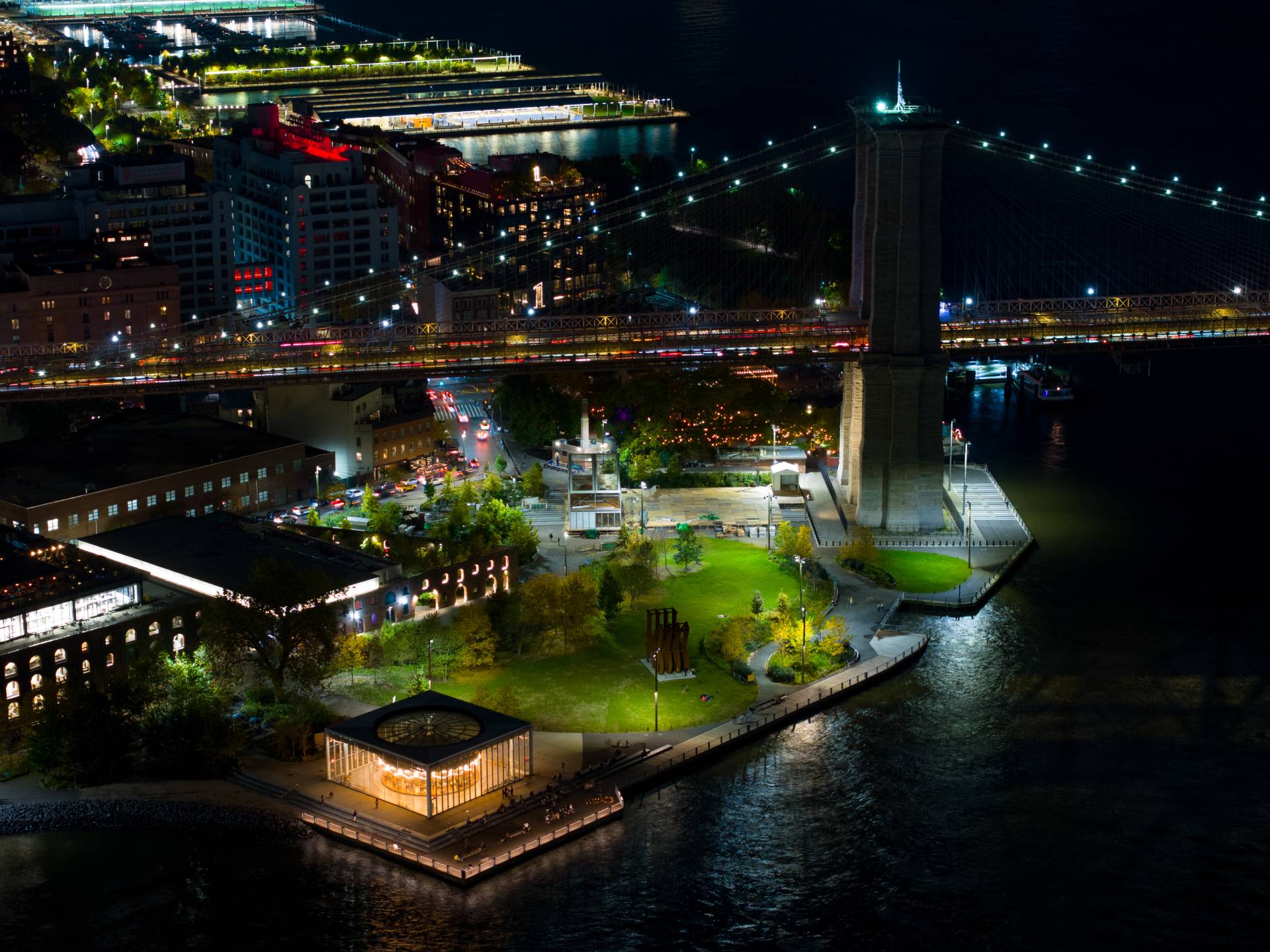 Power Connect’s scope of work includes retrofitting new state of the art floodlights to replace the existing onto the existing 45 foot wood poles. PCE was responsible for buying out new mounting hardware for easy install of these fixtures. PCE installed a new stainless steel hotbox with updated switchgear and heating equipment for Brooklyn Bridge Park. The plaza renovation included new company switches and rewiring of existing company switches along with a revamped security system to ensure the safety of all visitors that enjoy all that the park plaza offers right next to Dumbo restaurants and Jane’s Carousel.